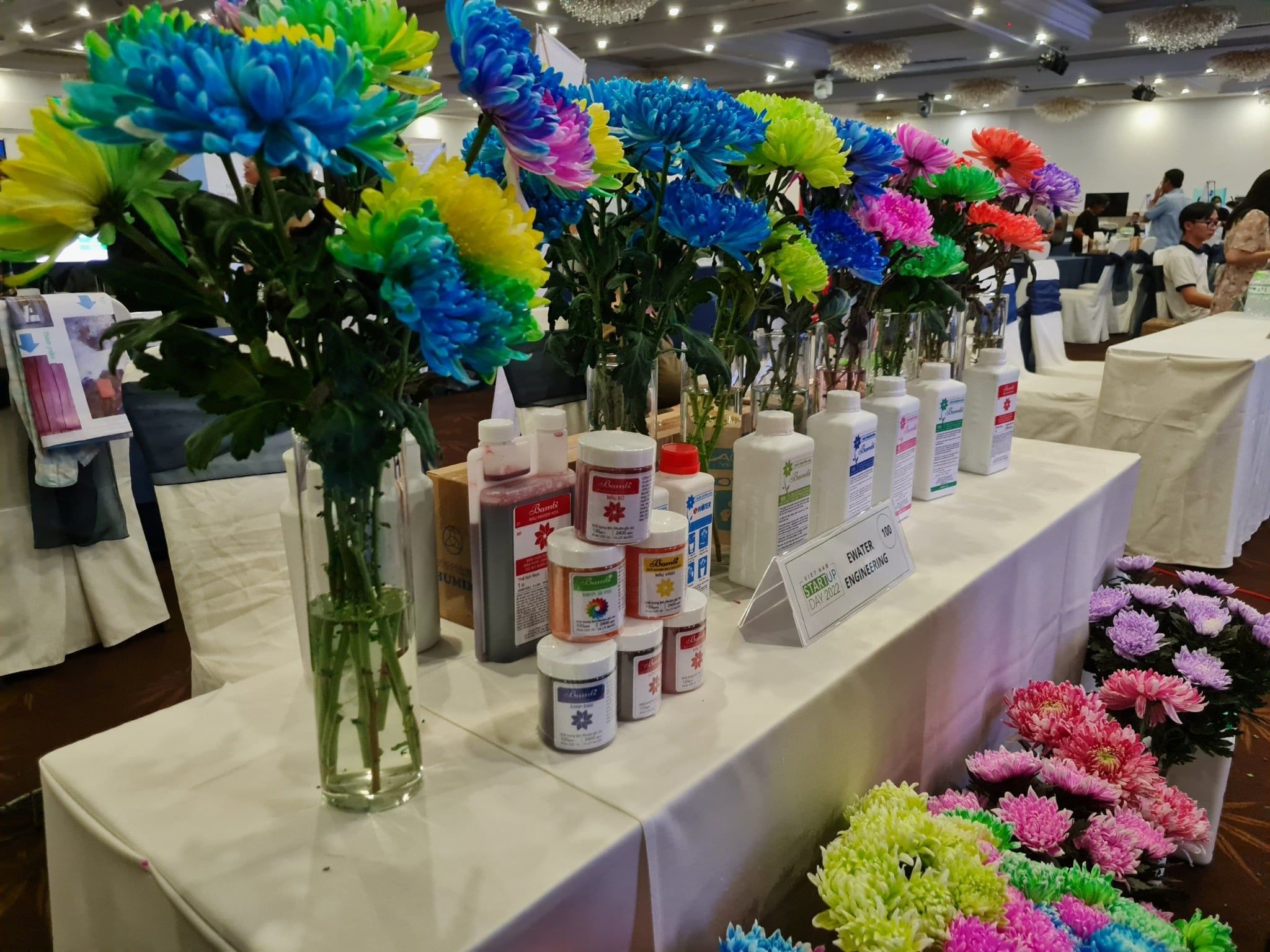 Bước 3: Khi đã đạt đến màu sắc mong muốn, cắt lại gốc rửa sạch và cho vào nước cắm hoa. Cho thêm nước dưỡng hoa Bambi Hana để hoa giữ được độ tươi lâu